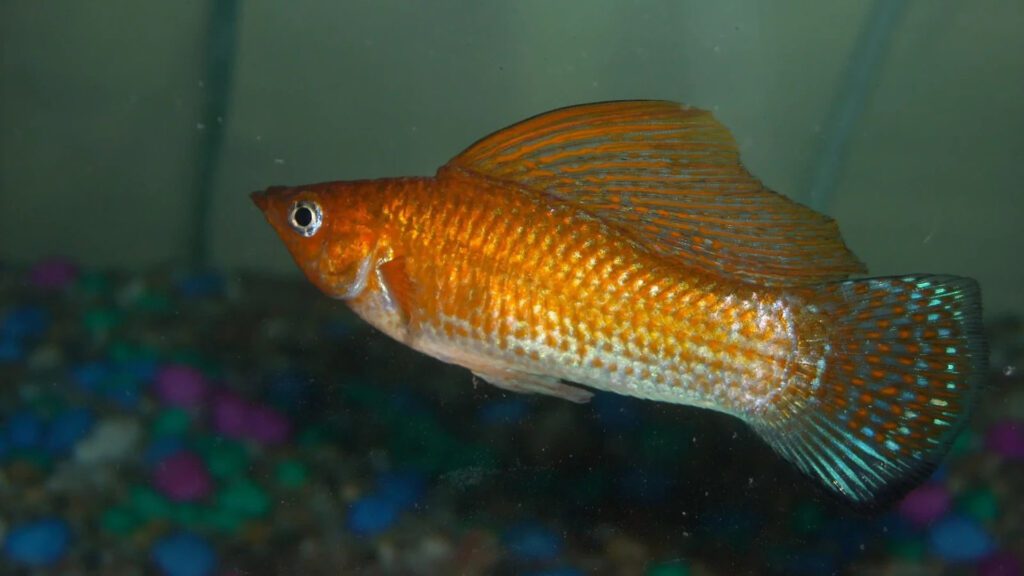 Gold dust molly fish.